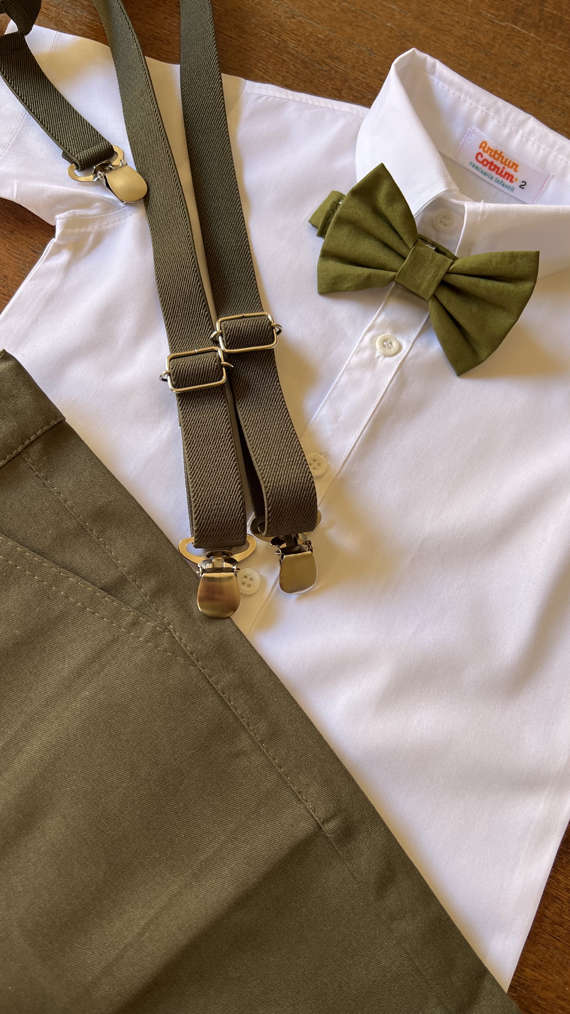 Suspensório de elástico, na cor verde miltar, para crianças de RN a 15 anos.