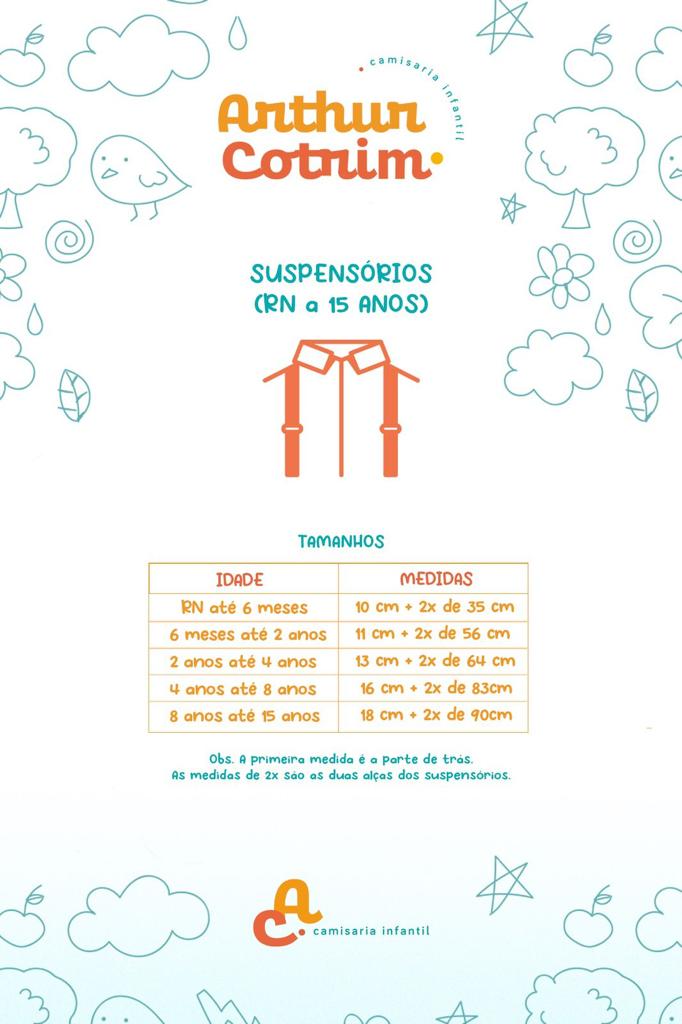 Suspensório de elástico, na cor amarelo canário, para crianças de RN a 15 anos.