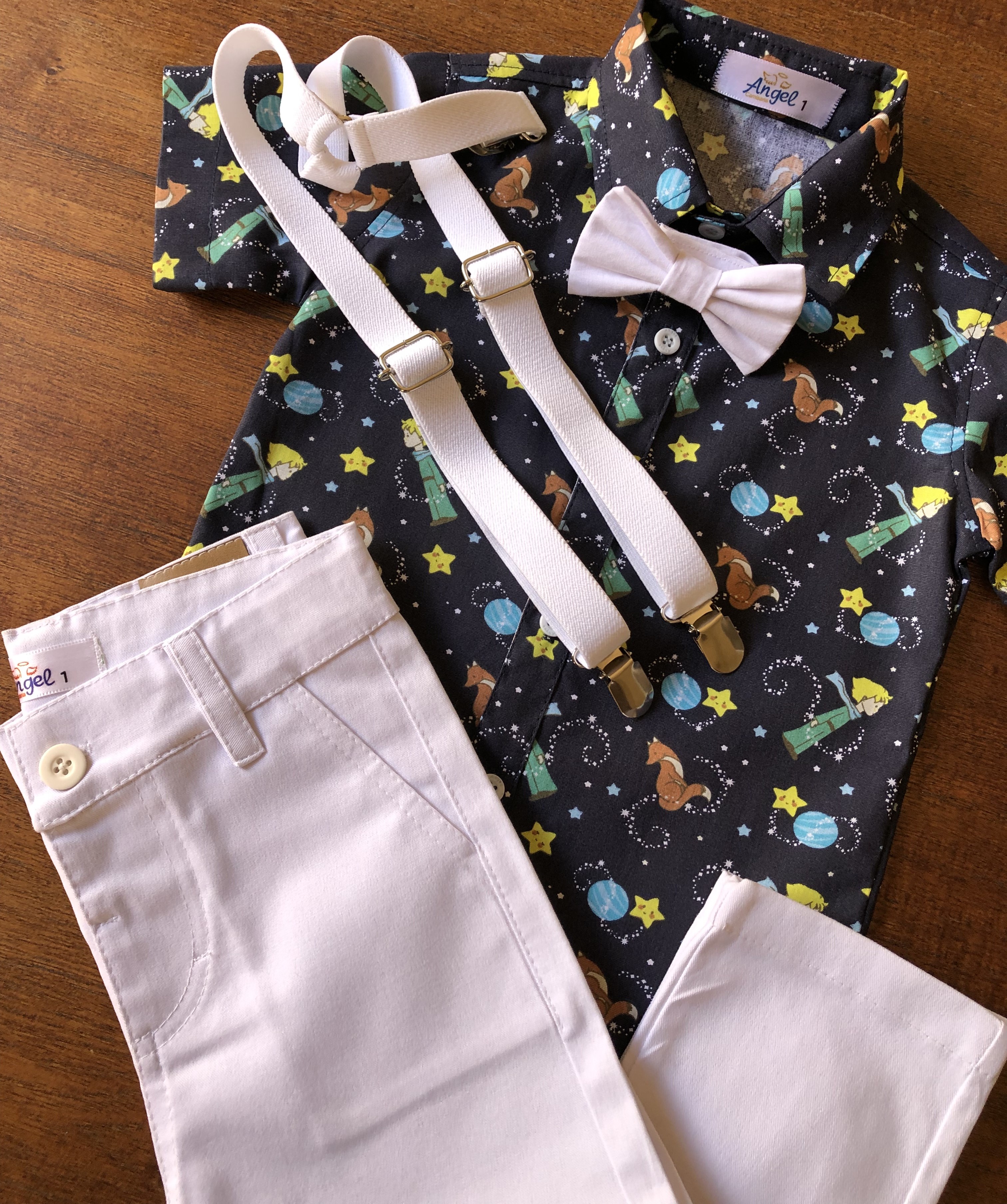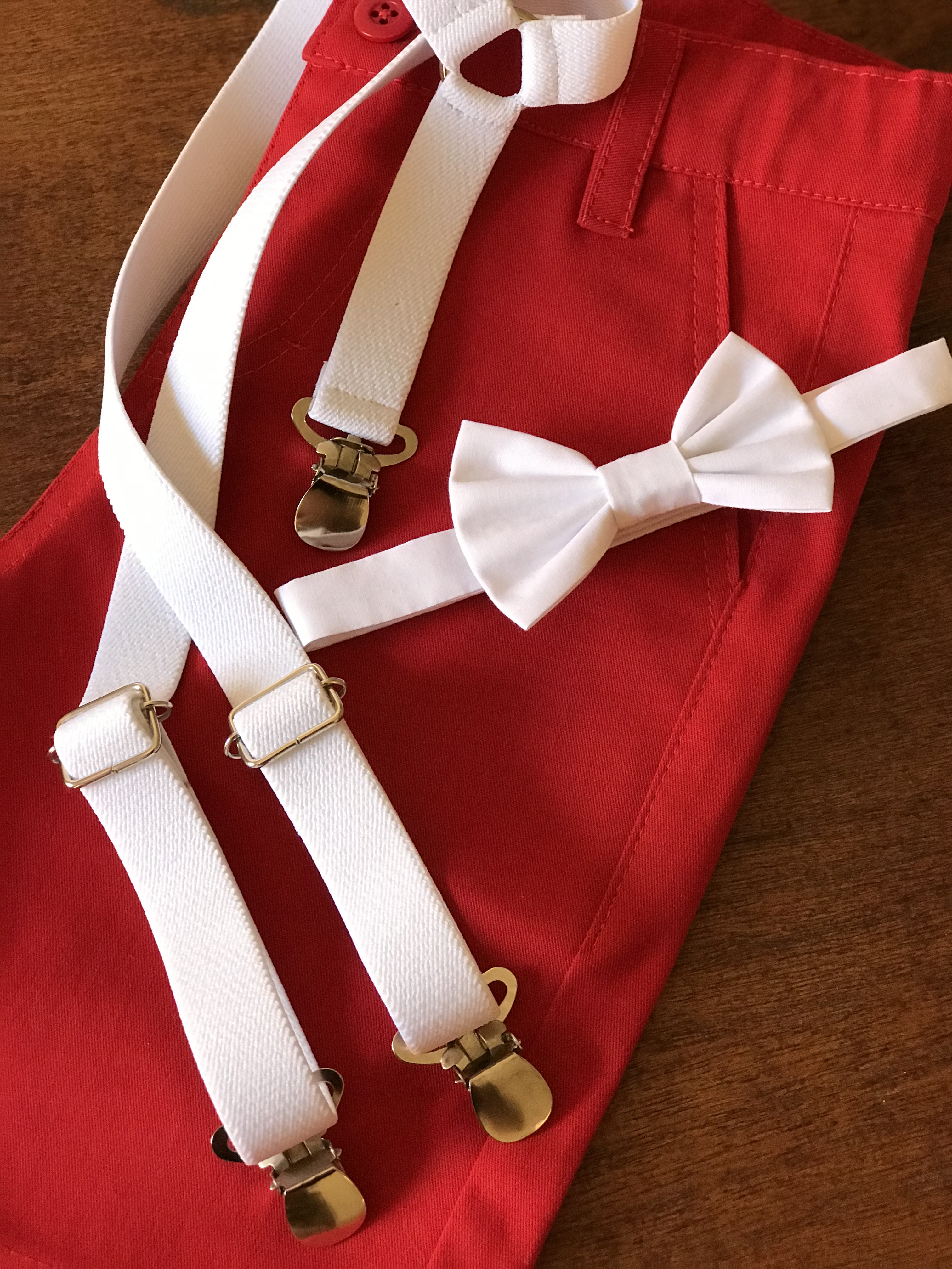 Suspensório de elástico, na cor branco, para crianças de RN a 15 anos.