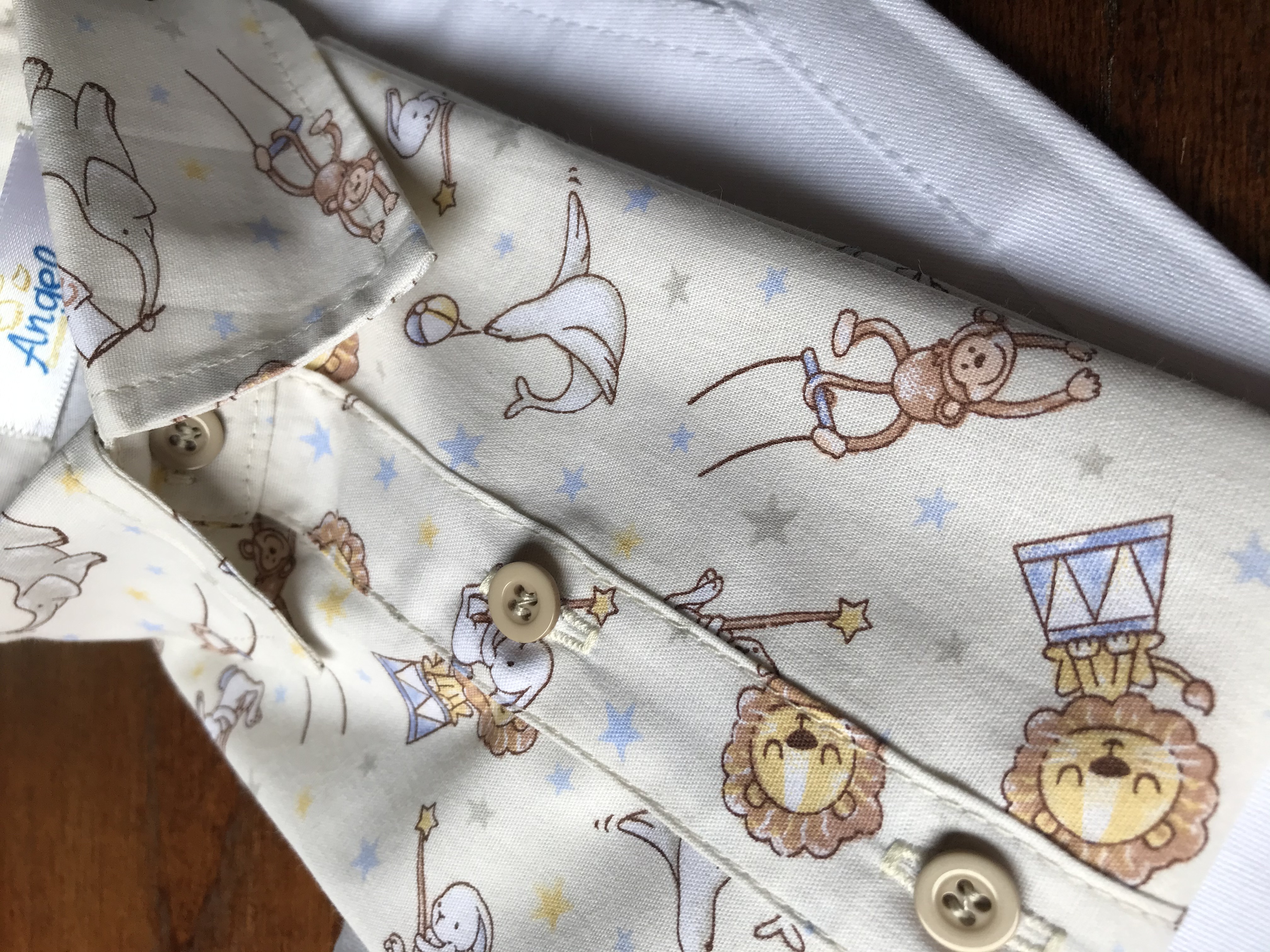 Camisa Manga Curta Animais Acróbatas Fundo Creme com Azul