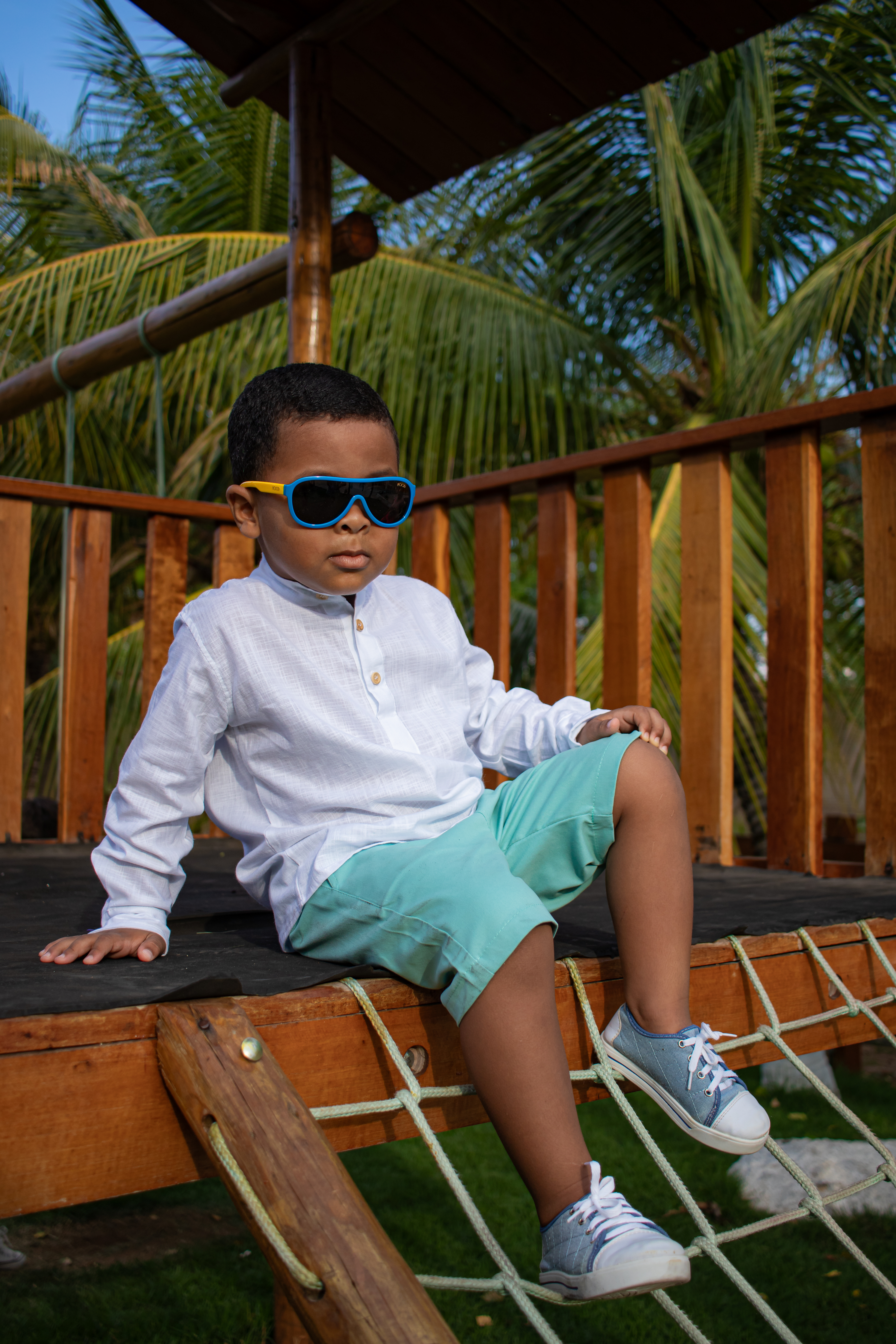 -Calça com elástico para regulagem e melhor ajuste a cintura da criança.