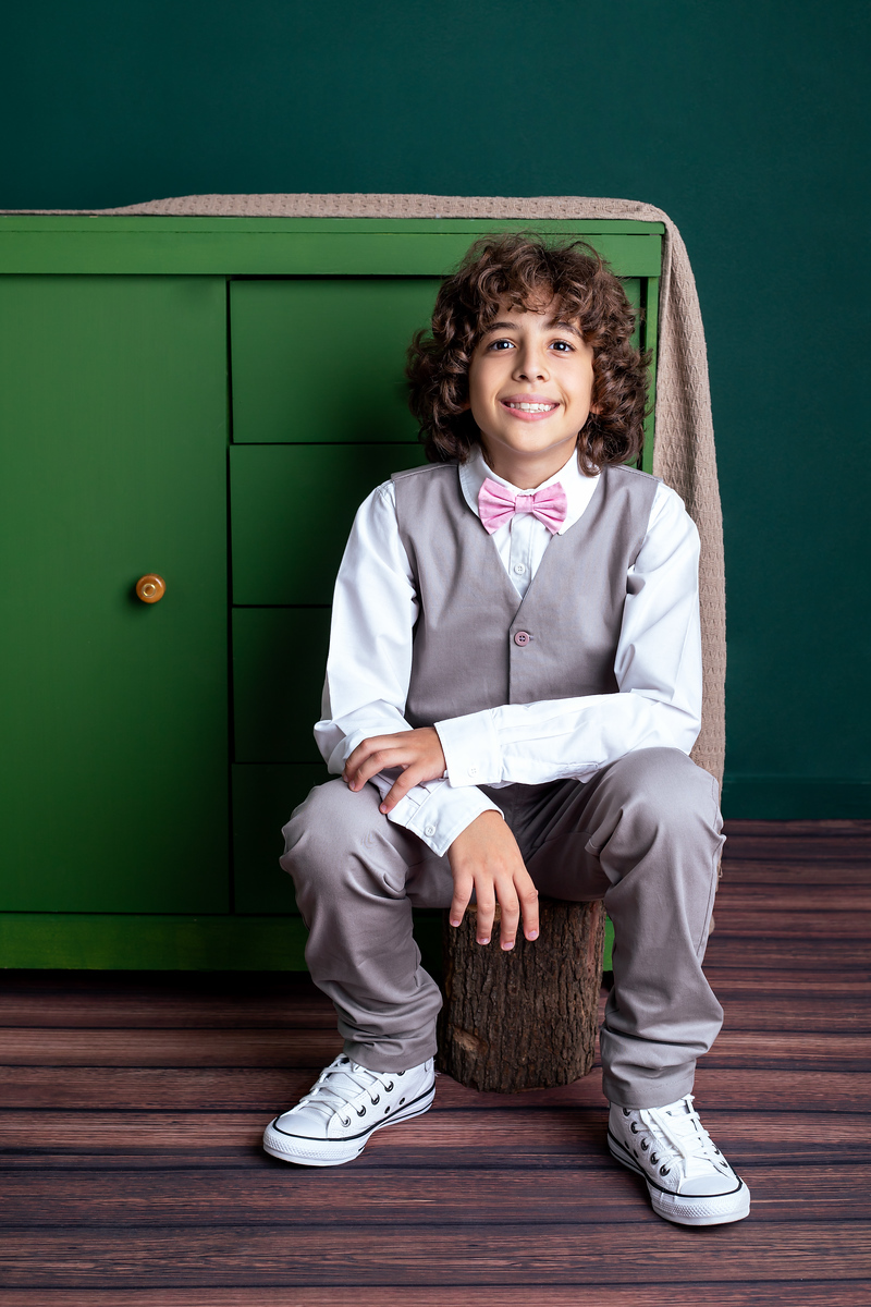 O Conjunto Social foi especialmente desenhado para tornar um momento ainda mais especial. Composto por uma elegante calça de sarja cinza prata, uma camisa de manga longa branca, colete e uma gravata sofisticada, este conjunto é ideal para cerimônias e ocasiões formais.