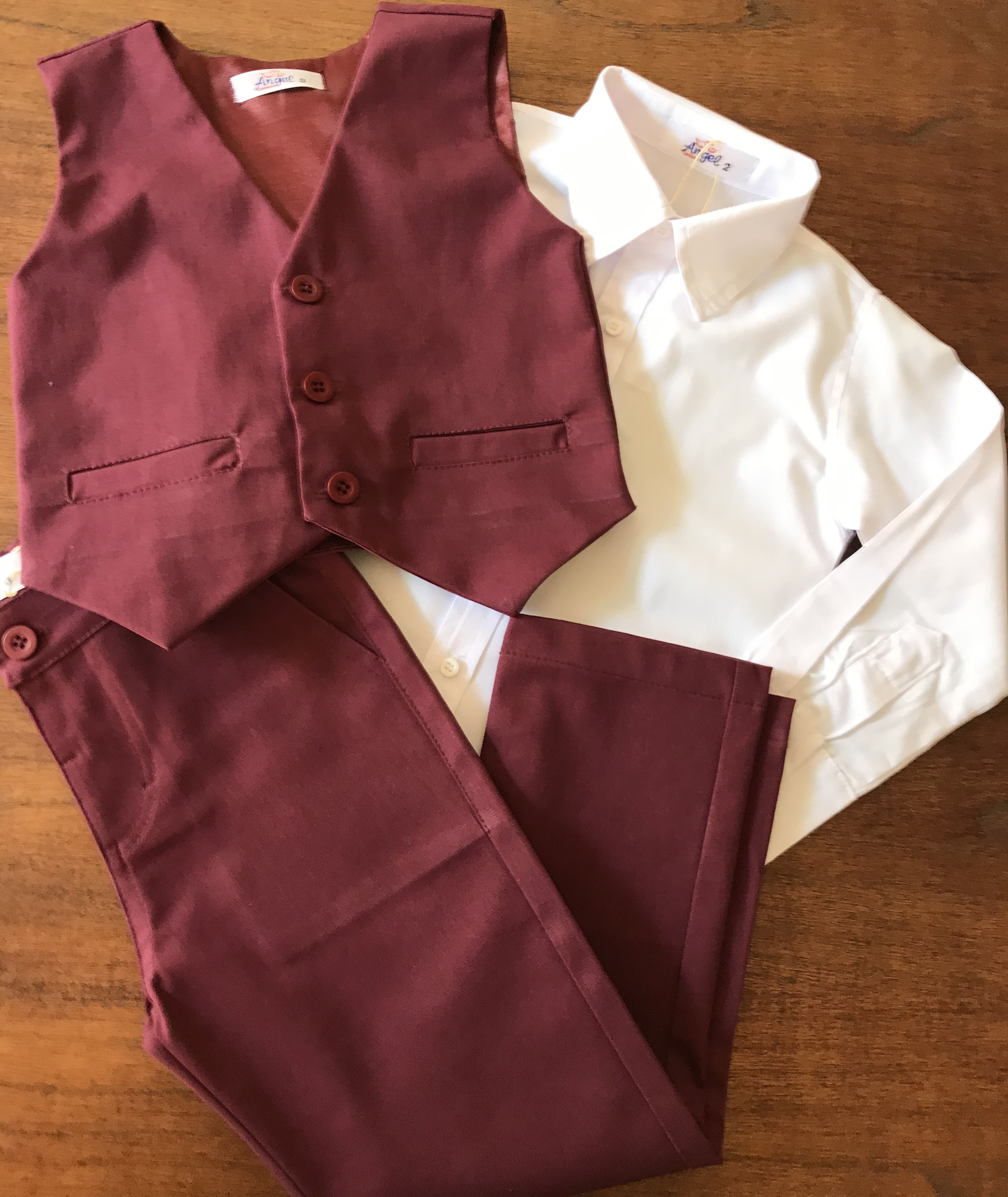 O Conjunto Social foi especialmente desenhado para tornar a noite do seu pequeno um momento ainda mais especial. Composto por uma elegante calça de sarja azul marsala, uma camisa de manga longa branca e uma gravata sofisticada, este conjunto é ideal para cerimônias e ocasiões formais.